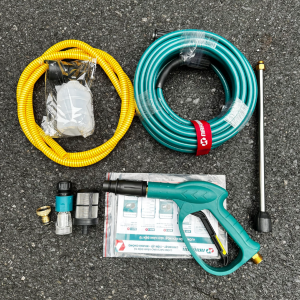 – Phụ kiện bao gồm: dây xịt áp lực 15m, dây hút nước đầu vào 2m, bình phun bọt tuyết, súng phun nước, thanh nối dài, kim thông nòng súng, chõ lọc rác, 2 đầu nối nhanh. Với bộ phụ kiện đầy đủ bạn chỉ cần lắp đặt là có thể sử dụng luôn mà không cần phải mua thêm bất kỳ bộ phận nào khác.